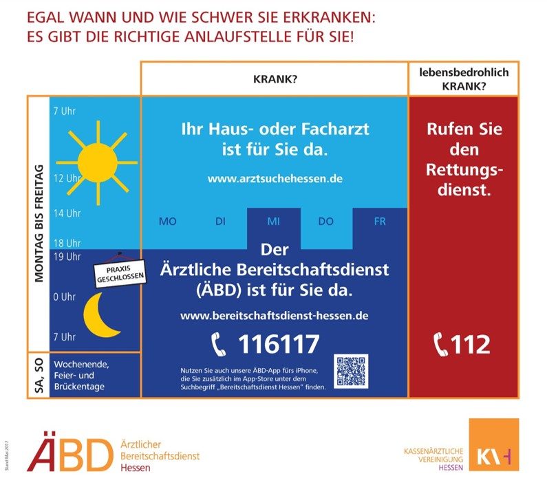 Ärztlicher Bereitschaftsdienst: für nicht lebensbedrohliche Notfälle die ärztliche Hilfe benötigen